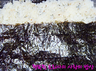 밥을 올려 골고루 펴고 김을 올린다.