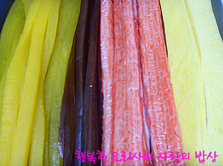 3. 단무지,우엉,게맛살,달걀,참나물무침, 불고기깻잎을