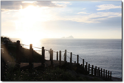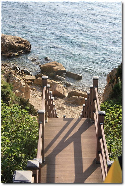바다 쪽을 향해 가파른 계단이 기다리고 있다.