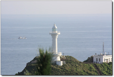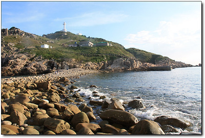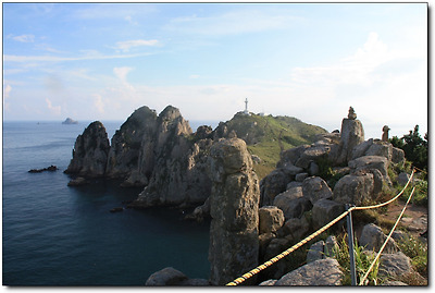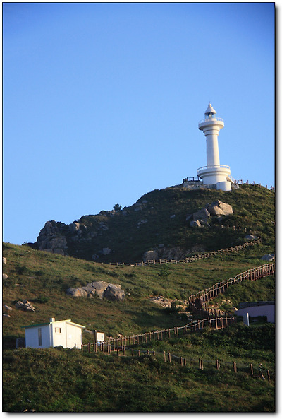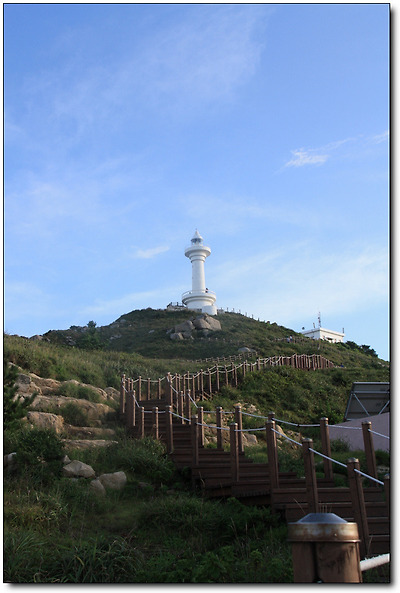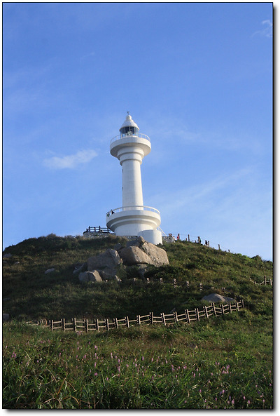 정상에 있는 새하얀 등대가 푸른 바다물과 어우러져 더욱 밝게 빛난다.