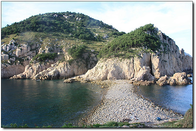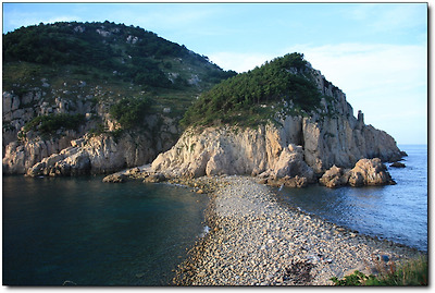 소매물도와 등대섬을 이어주는 다리 역할을 하는 자갈길...