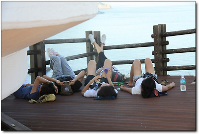 등대를 조금 돌아가자 먼저 온 이들이 세상에서 가장 편한 자세로 휴식을 취하고 있다.