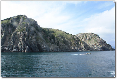 열목을 건너 등대섬에서 돌아보니 소매물도의 기암절벽이 장관이다.