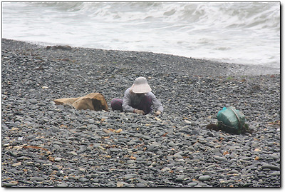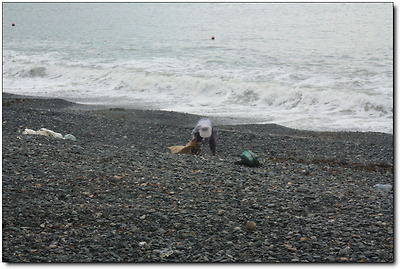 뭘 하시냐고 여쭈었더니, 바다가 토해놓은 쓰레기를 치우고 계신단다.