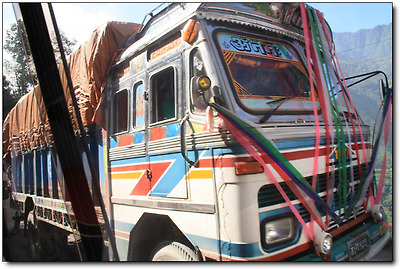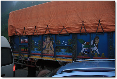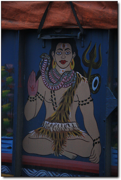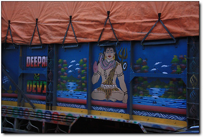 트럭 옆 면에는 부처 같은 신의 그림들이 가득했다.
