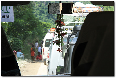 굽이굽이 산길을 돌아 쌩쌩 달리는 차 지붕에 사람까지 태웠다.