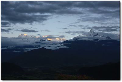 해뜨기전, 눈앞에 펼쳐져 있는 산들은 한폭의 수묵화를 보는 느낌!