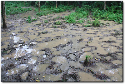 내리는 비에 코끼리 발자국은 그대로 웅덩이가 되어 버렸다.