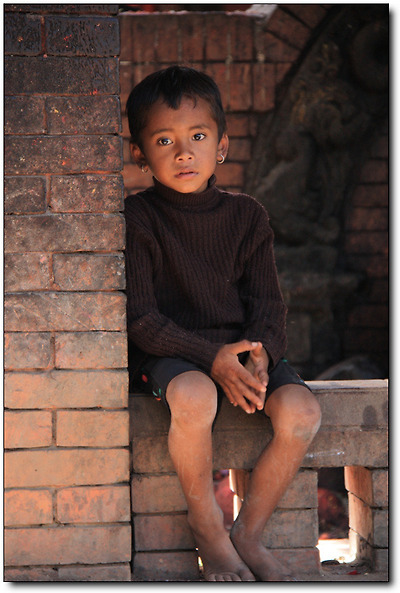 문앞을 지키고 있는 네팔 아이와 눈이 마주쳐 미소를 지어보였더니
