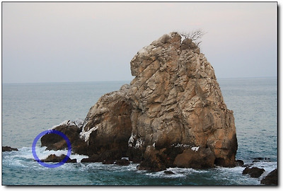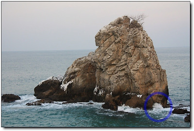 바위의 엉덩이 쪽으로 파도가 부딪힌다 싶더니....
