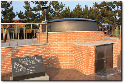 한쪽엔 거대한 가마솥이 걸려 있는데, 우리나라에서 제일 큰 가마솥이란다. 2004년에 열린 한반도 해맞이 축전 행사에 참여한 관광객들을 위해 함께 떡국을 나눠먹을 수 있도록 특수 제작된 것이라 하는데, 이후 해마다 새해 아침이면 이 가마솥에 떡국을 끓여 나눠먹는다고... 지름은 여자 어른 두명의 키를 합한것만하고, 깊이는 초등학생의 키만하다. 용량은 떡국 2만명분에 무려 4톤??? 포항 호미곶의 새해아침은 떡국 끓는 열기만으로도 후끈할 것 같다.