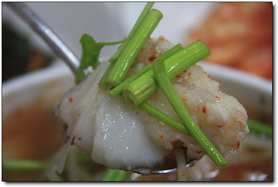 미나리가 잔뜩 들어간 맑은 국물을 한숟갈 떠 먹었더니