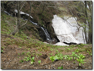 한쪽엔 꽃이 활짝 피었는데, 한쪽엔 아직도 녹지 않은 눈이라니...