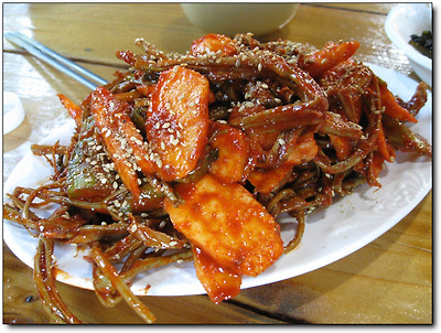 실제로 인삼의 성분인 사포닌이 많고 담백질이 풍부한 고급 나물이라 값도 쇠고기값에 버금간다고 한다.