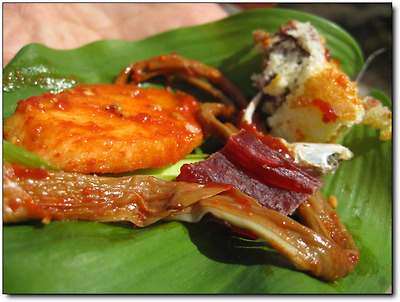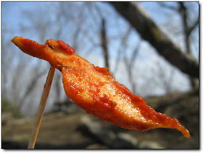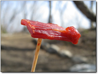 그래도 쌈이니만큼 고기 한 점 빼놓을 수 없어 육포 끝에 고추장을 찍어 올린다.