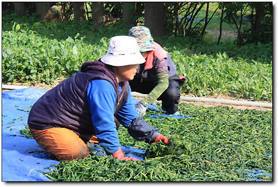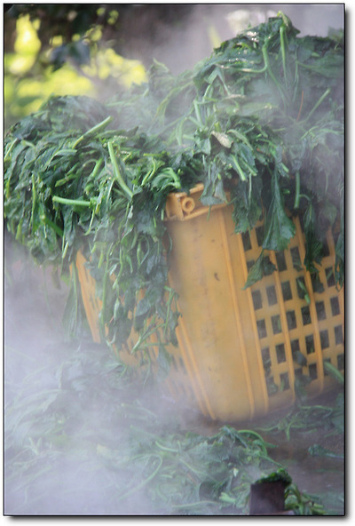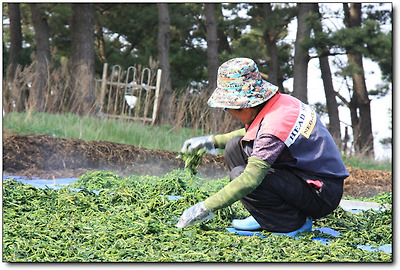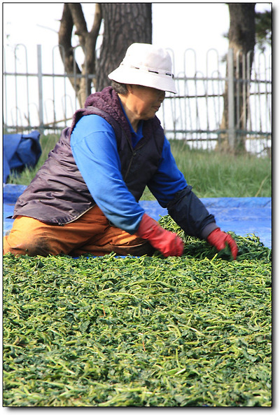 방금 삶아낸듯한 뜨끈뜨끈한 나물들이 햇살 아래 펼쳐지고 있었다.