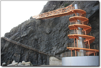 절벽 옆으로 붙어 있는 난간길이 보기만 해도 아찔하다.