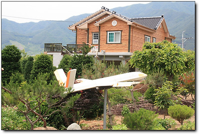 정원에 모형비행기를 여러대 장식한 전원주택이 있는가 하면