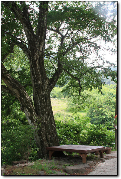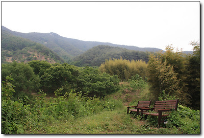 한적한 산길, 그 길섶에 차려진 벤치...