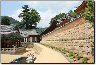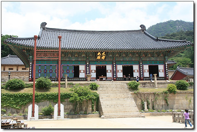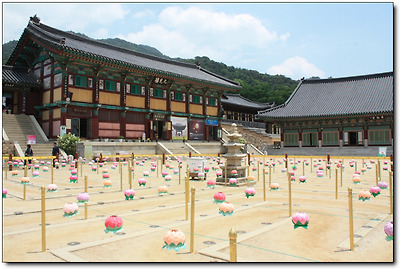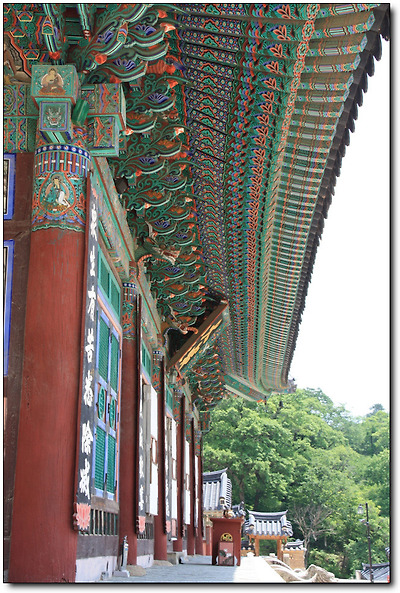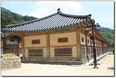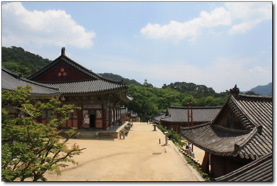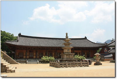 그 문 뒤로 네개의 건물이 있는데, 마당 앞쪽의 동서로 긴 건물은 수다라장이고, 뒤에 있는 긴 건물은 법보전이다.
