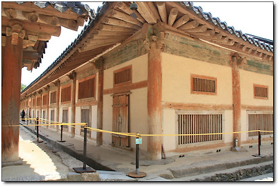 그 양쪽 끝에 있는 작은 건물은 고려각판을 모신 동,서 사간판전이다.