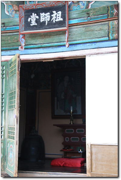 문틈 사이로 무학대사의 영정이 설핏 보인다.