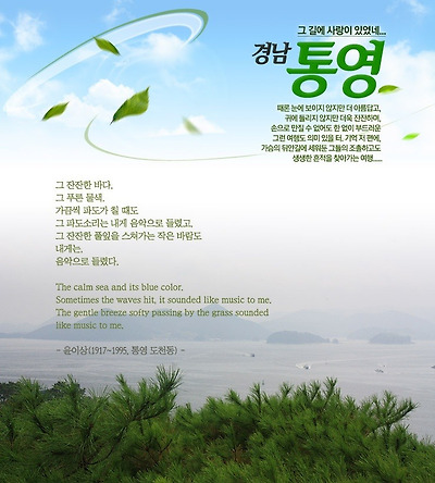 나누고 어느 한곳 낯설지 않은 그 곳에서 14만 여명의 선한 이들이 따듯한 체온을 부비며 사는 곳이 통영이다.