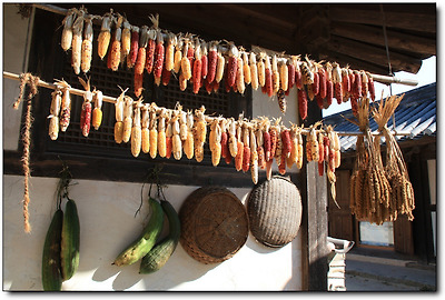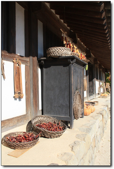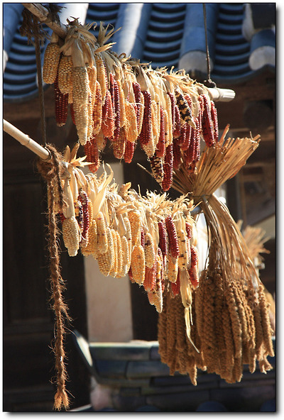 처마 밑엔 옥수수가, 마당에 빨간 고추가,