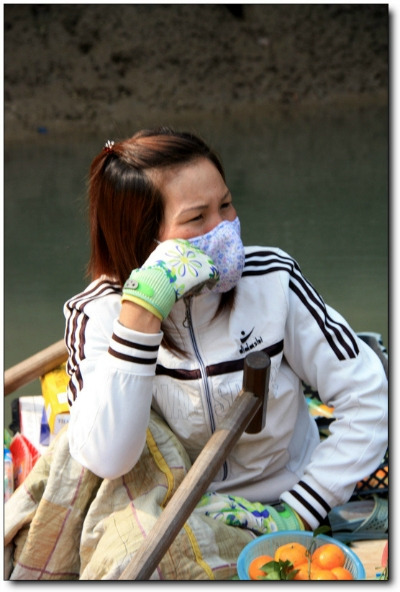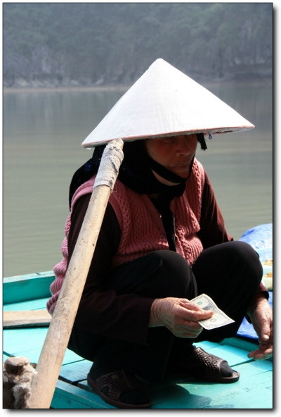 우리가 탄 배 옆으로 능숙하게 배를 갖다붙이는 젊은 여인!