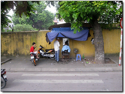 담벼락이 있는 곳엔 어디나 노상 간이 이발소가 있었다.