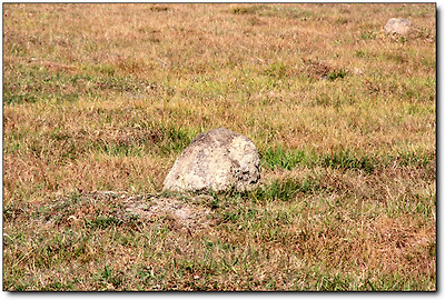 "저기 하얗게 튀어나와 있는 것을 돌이라고 생각하고 앉으면 큰일납니다. 개미집입니다!"