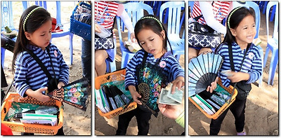 내내 무표정 하던 아이가, 부채 하나 팔고 1달러를 받아들고는 비로소 환히 웃는다.