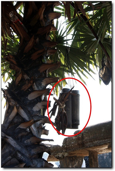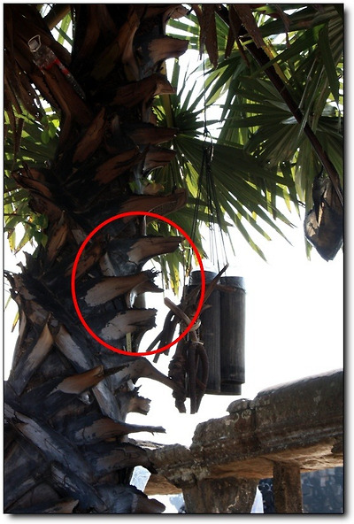 대학살 당시 크메르루즈 군이 이 슈가팜트리의 날카로운 나무 껍질로 사람들을 찔러 죽였기 때문입니다.