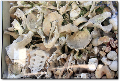 수백개의 유골을 한곳에 모아 놓고 보지만