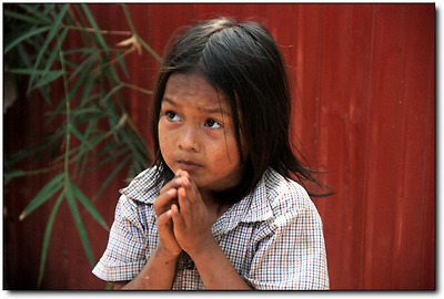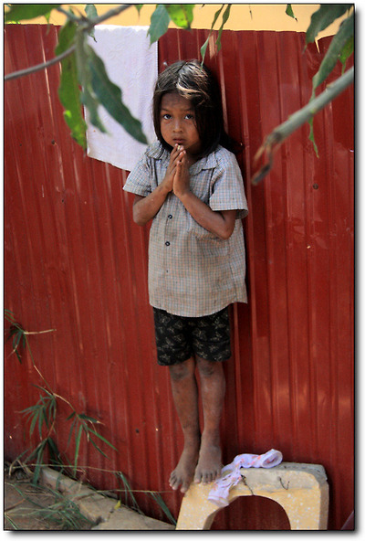 와트마이 사원을 떠나려는 버스 옆으로 조용히 다가온 여자아이.