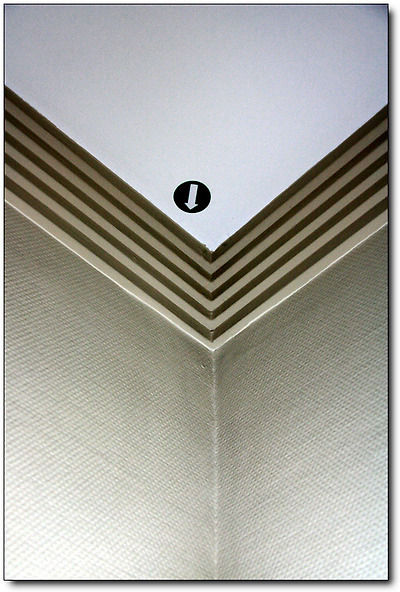 그런데 누워서 보니, 방 천장 모서리 쪽에 뭔가가 붙어 있다.