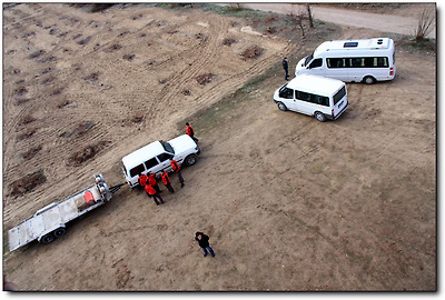 그들은 하늘에 떠 있는 열기구를 따라 지원 차량을 몰고 쉬임없이 뒤따라온다.