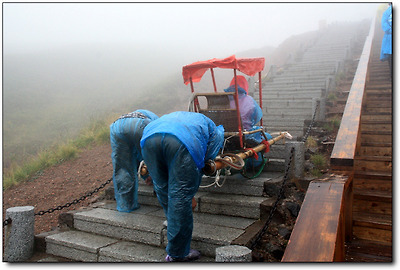 천지로 가는 서파 등정로는 1236개의 목조,석조 계단으로 이루어져 있다.