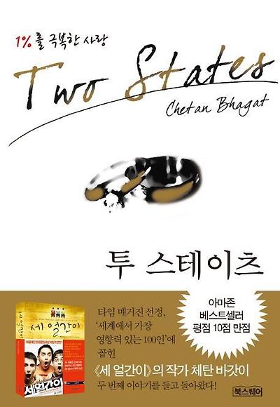 헐리우드보다 더 많은 영화를 생산해내는 발리우드! 진정한 영화의 본고장인 인도의 문화예술이 요즘 우리나라에서 크게 인기를 끌고 있다. 몇년전 개봉한 <슬럼독 밀리어네어>를 시작으로, 작년에 개봉했던 <세얼간이>까지... 작품의 질이나 흥행성으로 미루어 보아, 인도는 더 이상 문화의 후진국이 아니다. 요즘 그 선두에 인도 작가 '체탄 바갓'이 있다. 그가 최신작 <투 스테이츠>를 내놓았다. 부제는 '1%를 극복한 사랑'!! 1%를 극복해야 한다는 것은 99%는 이루었음이요, 어쩌면 버려도 상관없는 수치일수도 있다. 하지만 두 주인공이 몇년의 시간에 걸쳐 극복해야 했던 것은 그들에겐 절대 버릴 수 없는 소중한 것, 바로 가족의 사랑이었다.