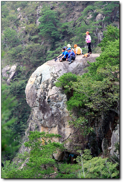 바위 절벽에 올라가 쉬고 있는 저 사람들은 도대체 얼마나 강심장인지...