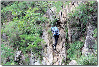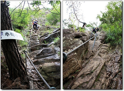 "네, 힘들어요. 밧줄 잡고 올라가야 해요."