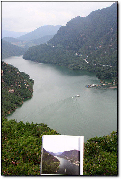 실제로는 1.5km 떨어져 있는 구담, 옥순봉이