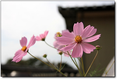 아랫부분은 담장에 가리고, 지붕만 드러나 있는 걸 보면