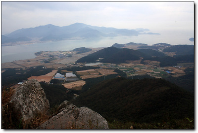 해발 500미터도 안되는 달마산 정상 가는 중턱에서 내려다보고 있는데,