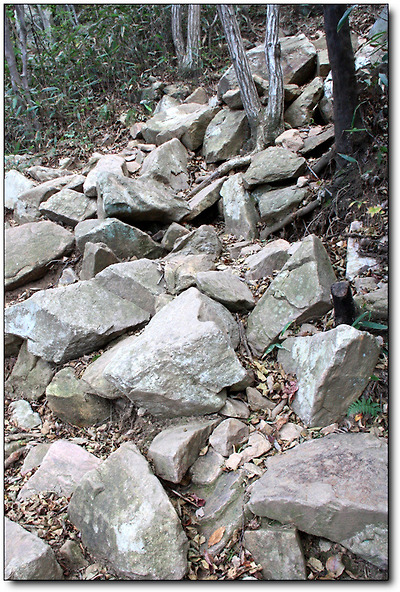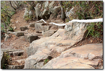 그런데 산 중턱 쯤 오르자 험악한 돌길이 시작되면서