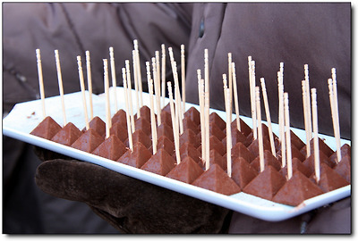 이쑤시개를 총총히 꽂아 놓아서인지 시식초콜렛에서 정성이 느껴진다.