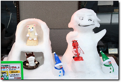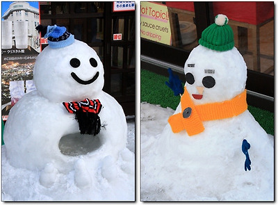 상점마다 만들어놓은 각기 다른 모습의 눈사람들은
