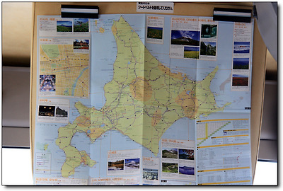 버스 안에는 커다란 홋카이도 지도가 걸려 있다.