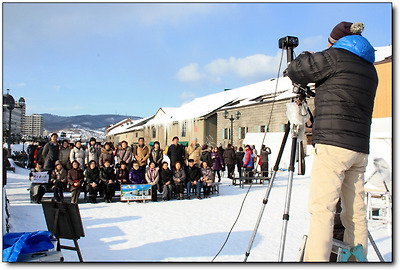 오타루 운하 앞에서 단체사진만 수십년째 찍어오고 있다는 사진사에게 기념사진 찰칵~! 나는 또 그 모습을 찰칵~!