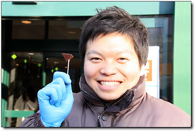 웬 잘생긴(?) 일본 남자가 초콜렛 시식을 권유하고 있는 중!